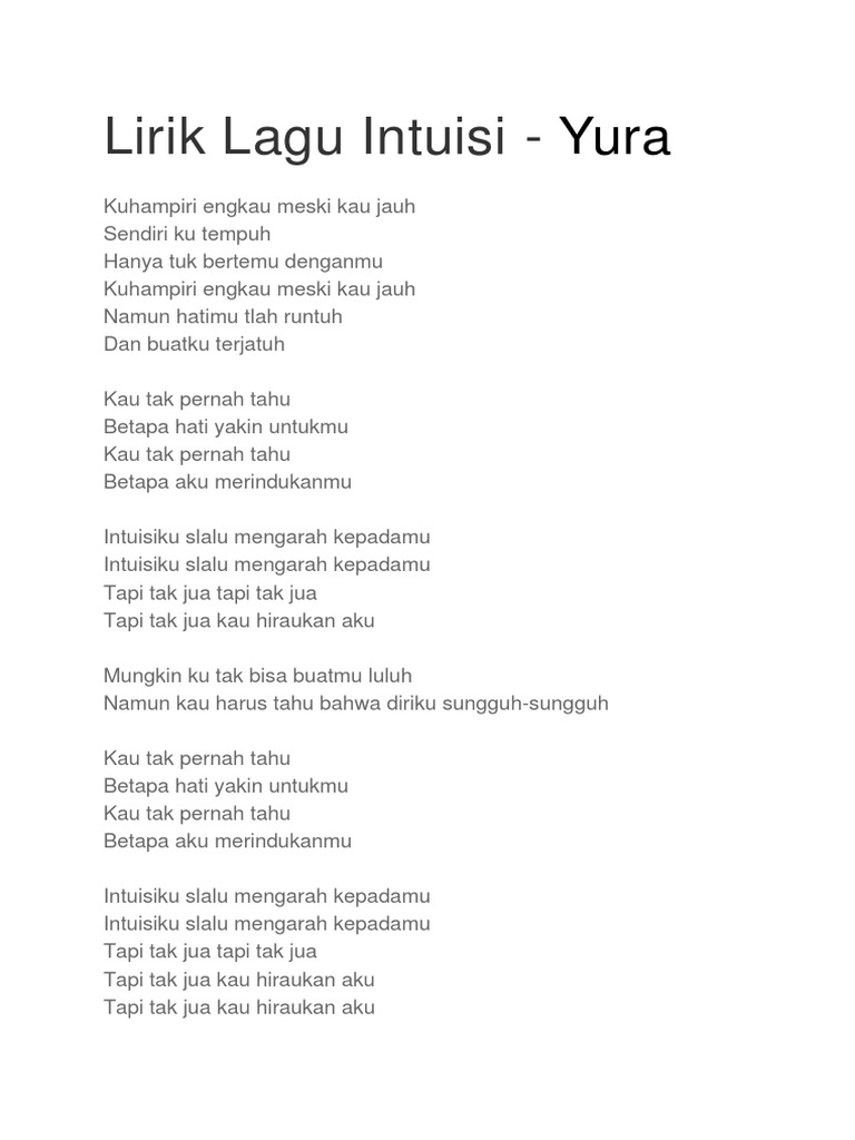 Lirik Lagu Lagu Populer Intuisi Yura Wattpad