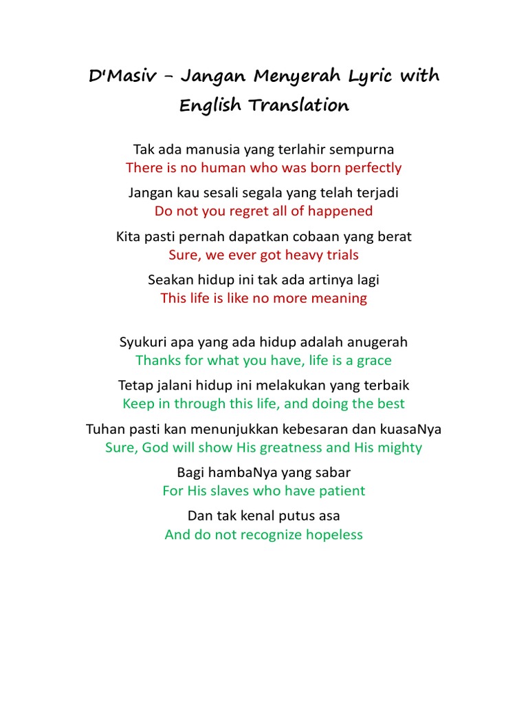 Teks Lagu D Masiv Jangan Menyerah Berbagai Teks Penting