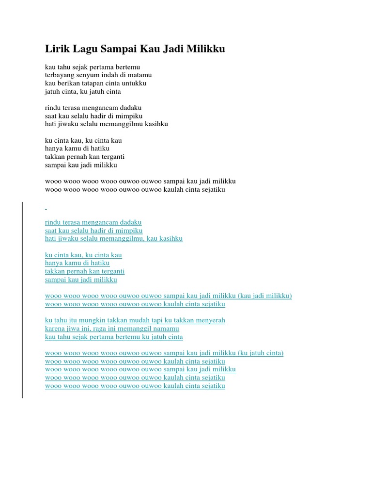 Lirik Lagu Sampai Kau Jadi Milikku Mp3 Storymusik