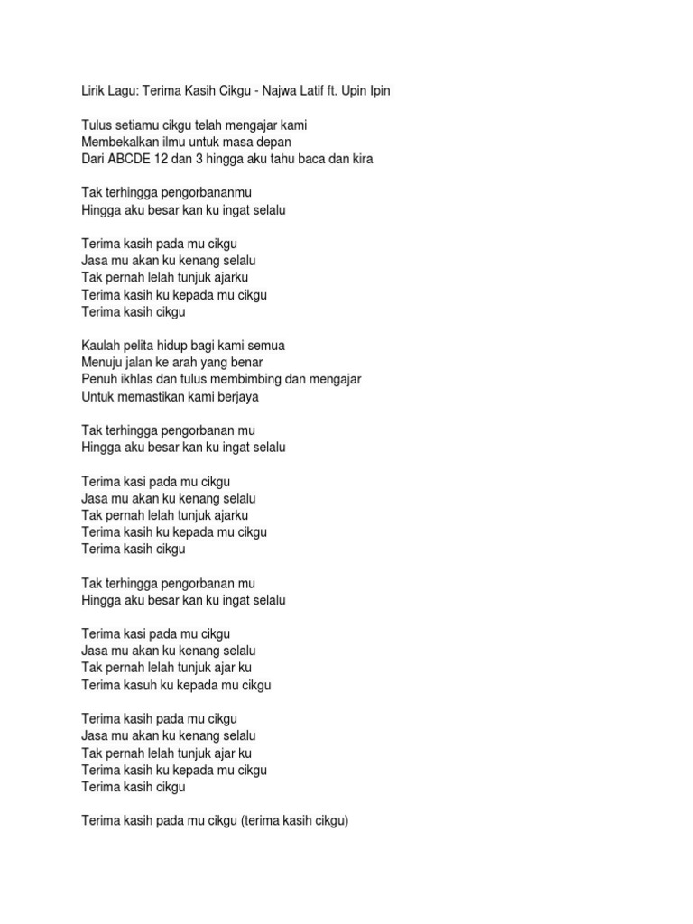 Lirik Lagu Bunda Piara Kelas 1 Sd Gurune Net