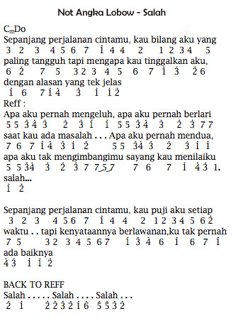 Not Angka Dan Lirik Lagunya Lobow Salah