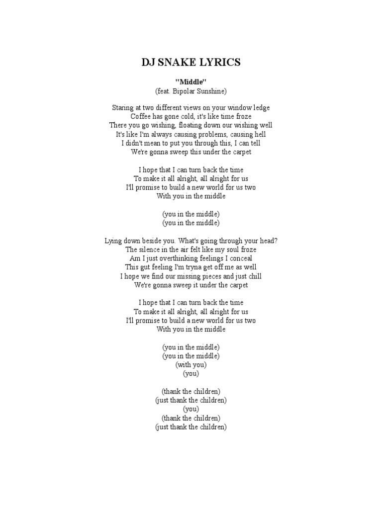 Song Lyrics Middle By Dj Snake Wattpad