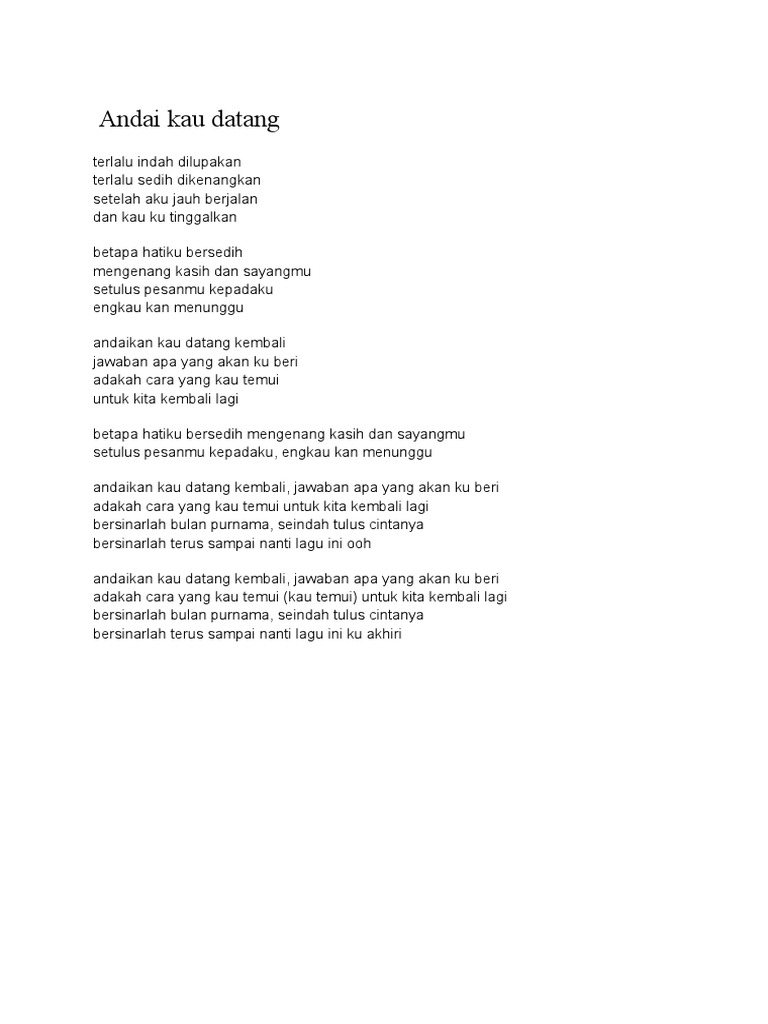 Teks Lagu Andaikan Kau Datang Kembali Noah Berbagai Teks Penting