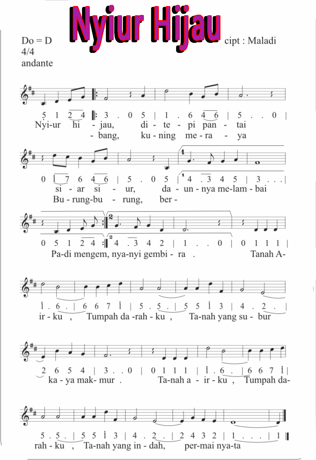 Lirik Lagu Dan Partitur Lagu Nyiur Hijau Lagu Nasional Indonesia Senibudayasia