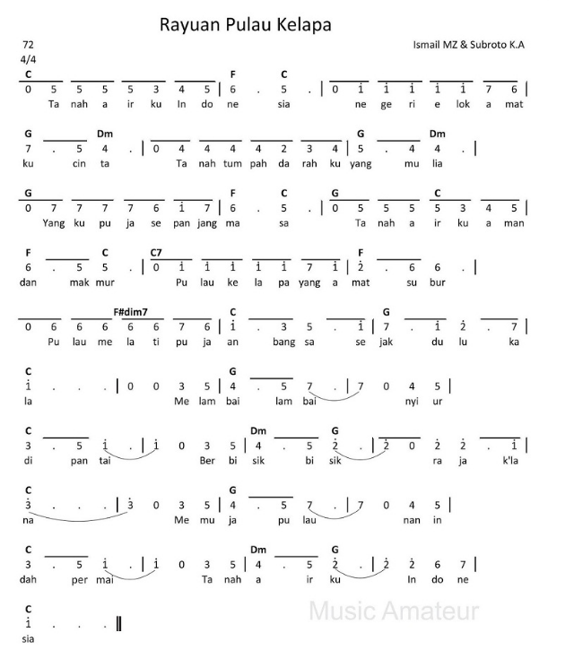 Lirik Lagu Dan Partitur Lagu Nyiur Hijau Lagu Nasional Indonesia Senibudayasia