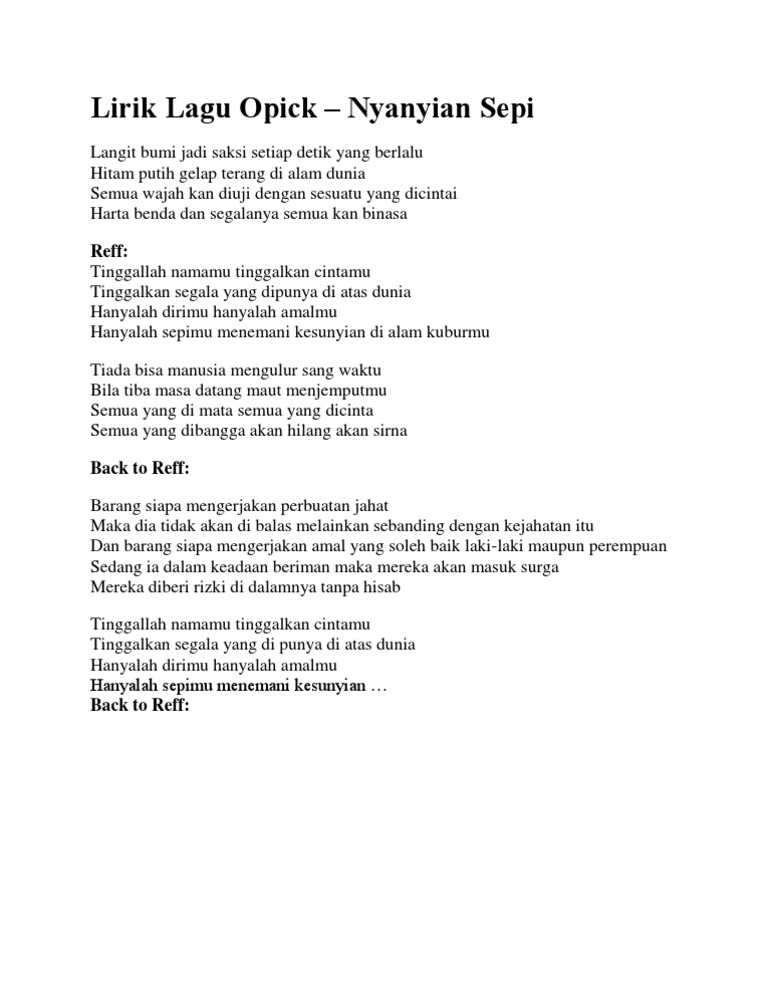 Lirik Lagu Bila Waktu Tlah Berakhir Opick Lengkap Bagaimana Kau Merasa Bangga Tribunjogja Com