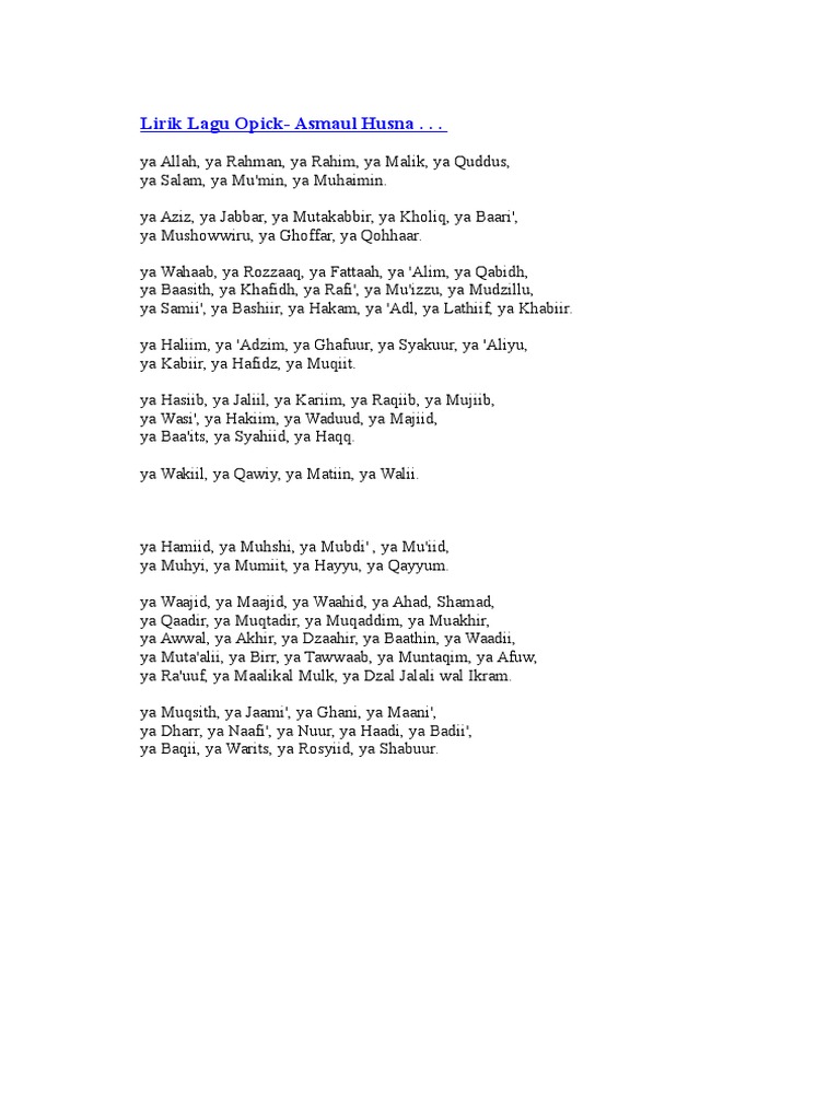 Lirik Lagu Alhamdulillah By Opick Feat Docx 6nq998dem9lw