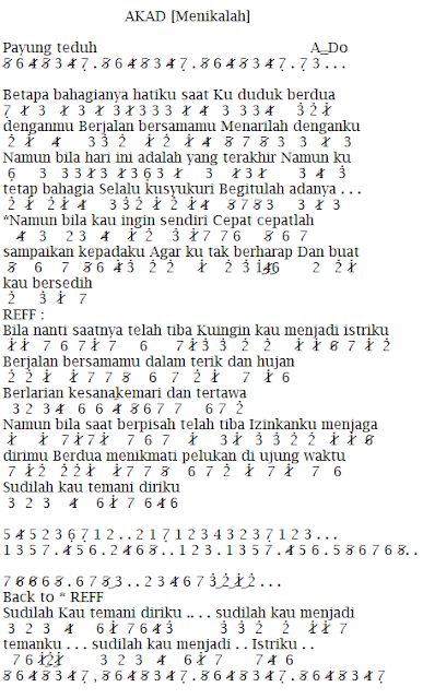 Not Angka Piano Pianika Akad Payung Teduh Lirik Lagu Lengkap