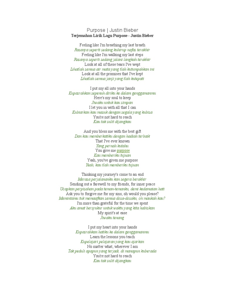 Justin Bieber Purpose Lirik Dan Terjemahan Limahan