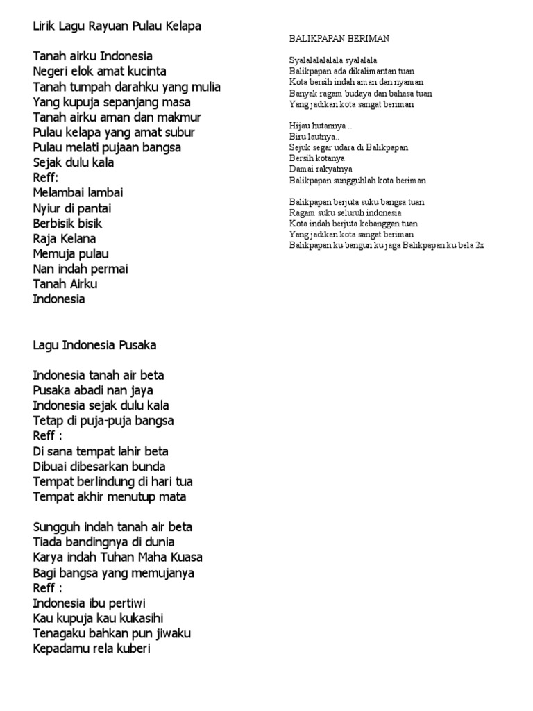 Deskripsi Kan Teks Lagu Rayuan Pulau Kelapa Contoh Ada Pada Gambar Brainly Co Id