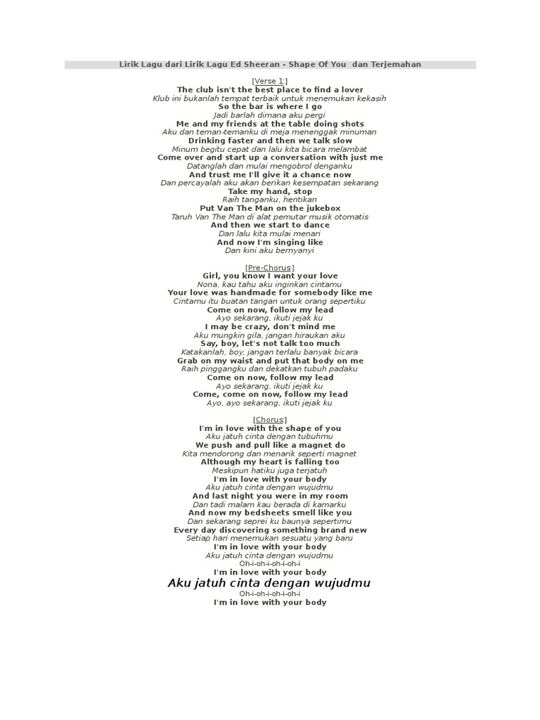 Arti Dan Terjemahan Lirik Lagu Ed Sheeran Shape Of You Asaljeplak Com