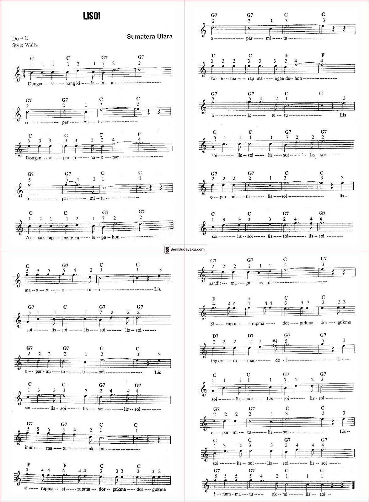 Lirik Lagu Lisoi Sumatera Utara Beserta Not Angka Dan Artinya Seni Budayaku
