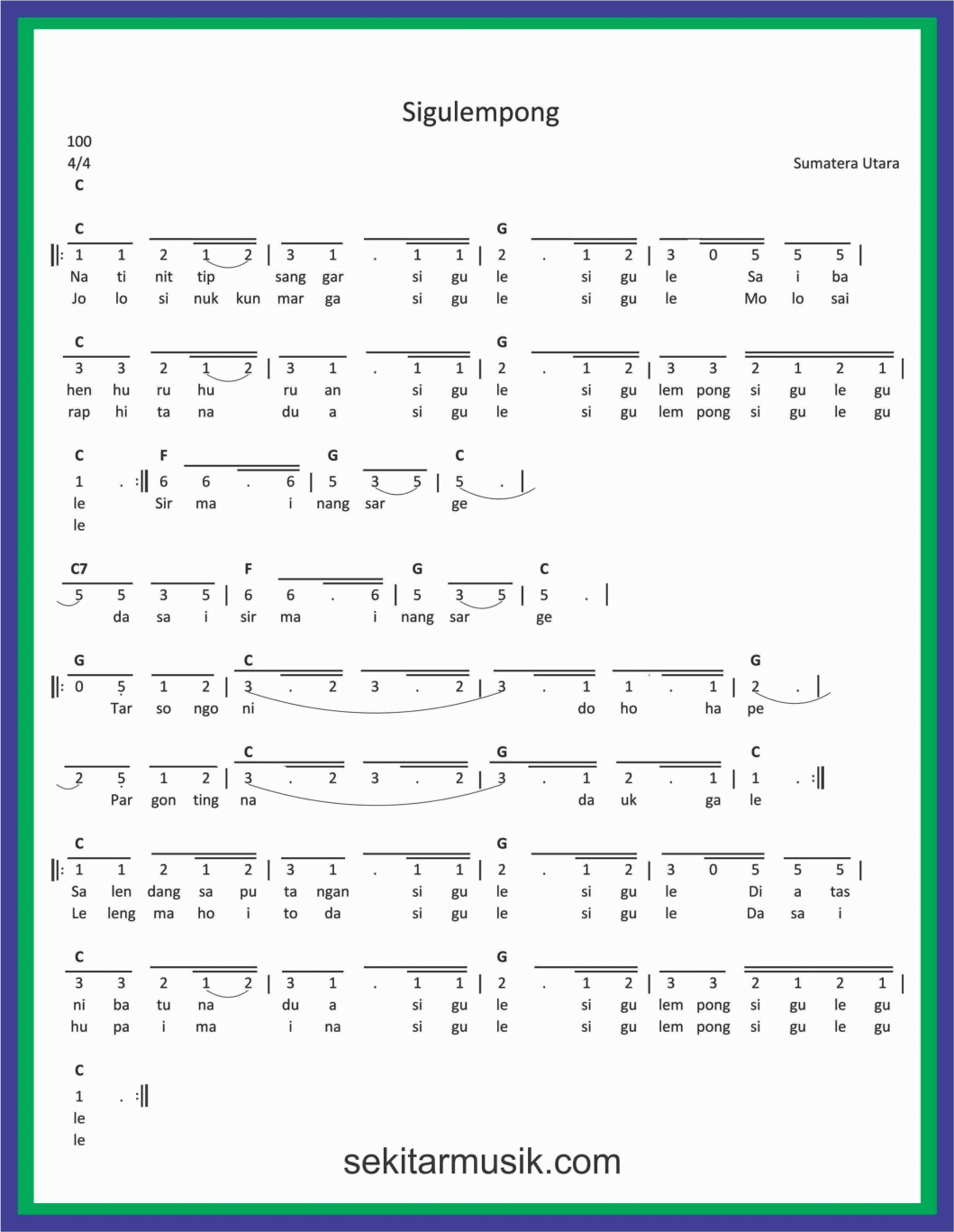 Not Angka Lagu Sinanggar Tulo Kumpulan Not Angka Lagu