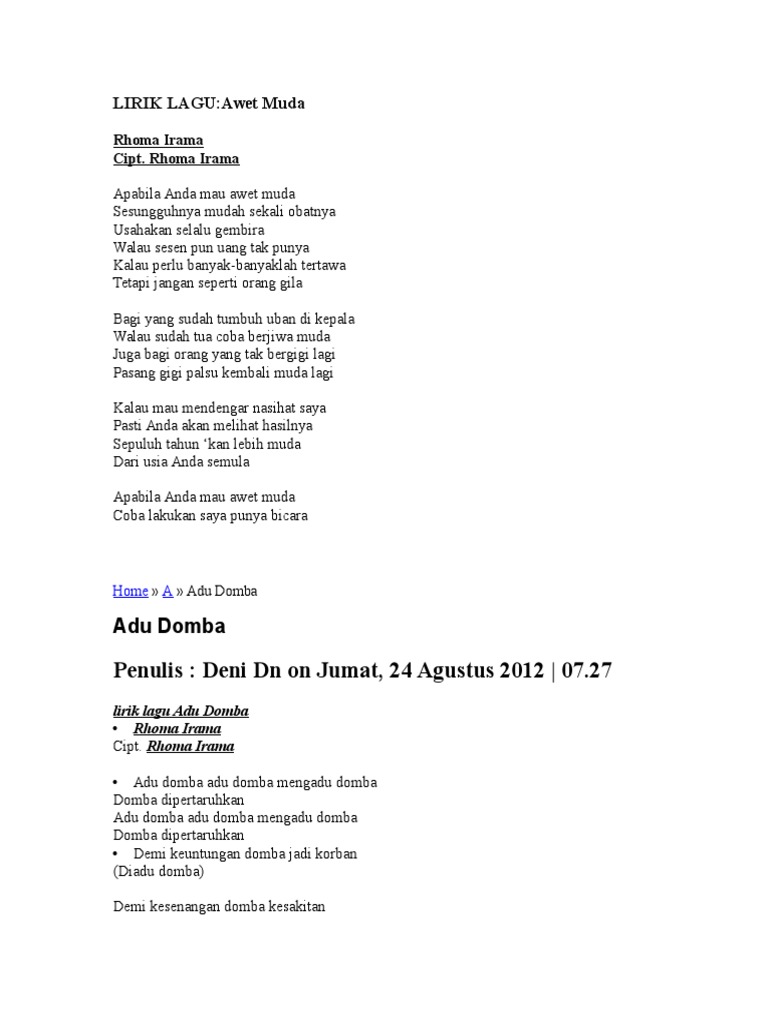 Lirik Lagu Rhoma Irama Lengkap A Z 260 Lagu