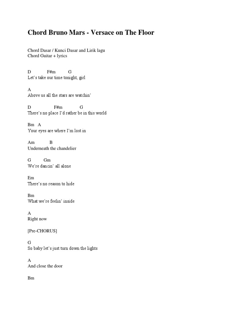 Chord Gitar Dan Lirik Lagu Versace On The Floor Bruno Mars Tribunjambi Com