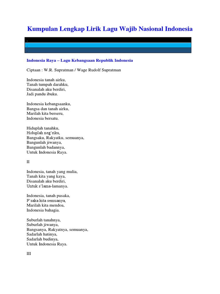 Lagu Lagu Wajib Nasional Indonesia Beserta Lengkap Dengan Lirik Lagunya Indonesia National Mandatory Song Berbagaireviews Com
