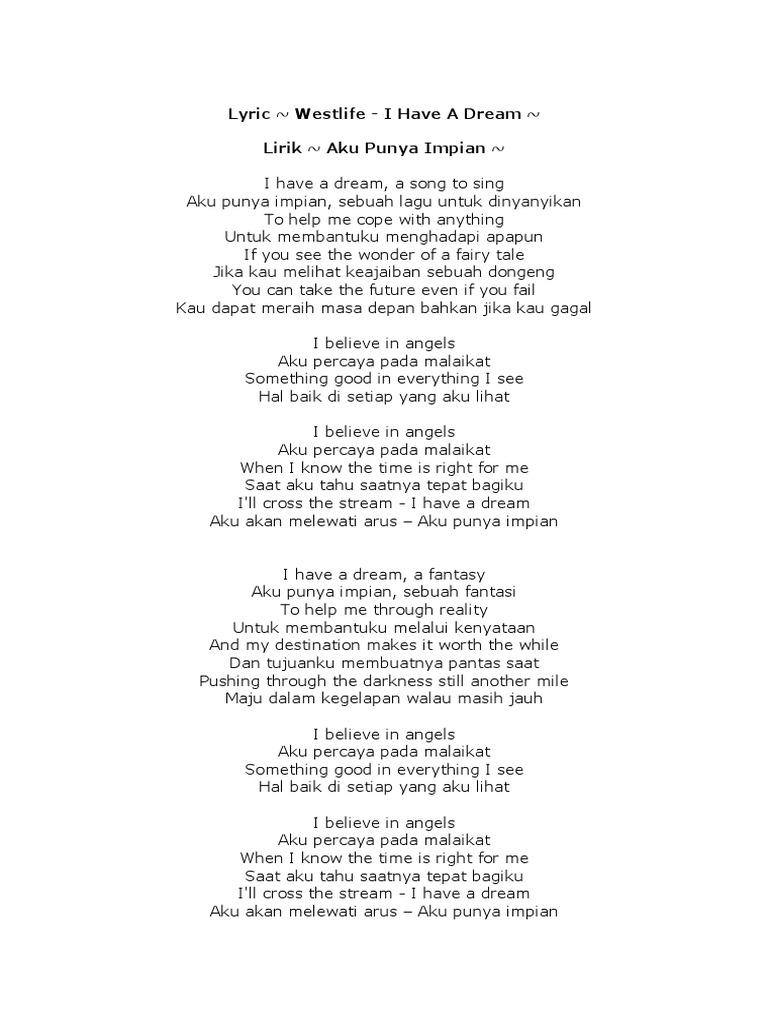 Lirik Lagu I Have A Dream Westlife Dan Terjemahannya Kepogaul