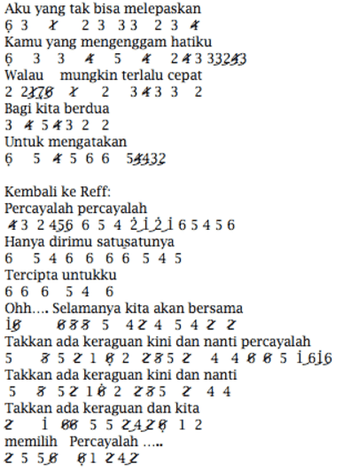 Not Angka Lagu Percayalah Afgan Pianika Recorder Keyboard Suling Not Angka Pianika Lagu Terlengkap