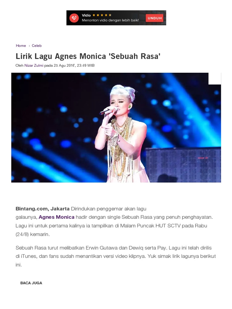 Berita Terbaru Dan Profil Artis Terkini Lirik Lagu Terbaru Agnes Monica Agnez Mo Sebuah Rasa Ciptaan Dewiq Dan Pay