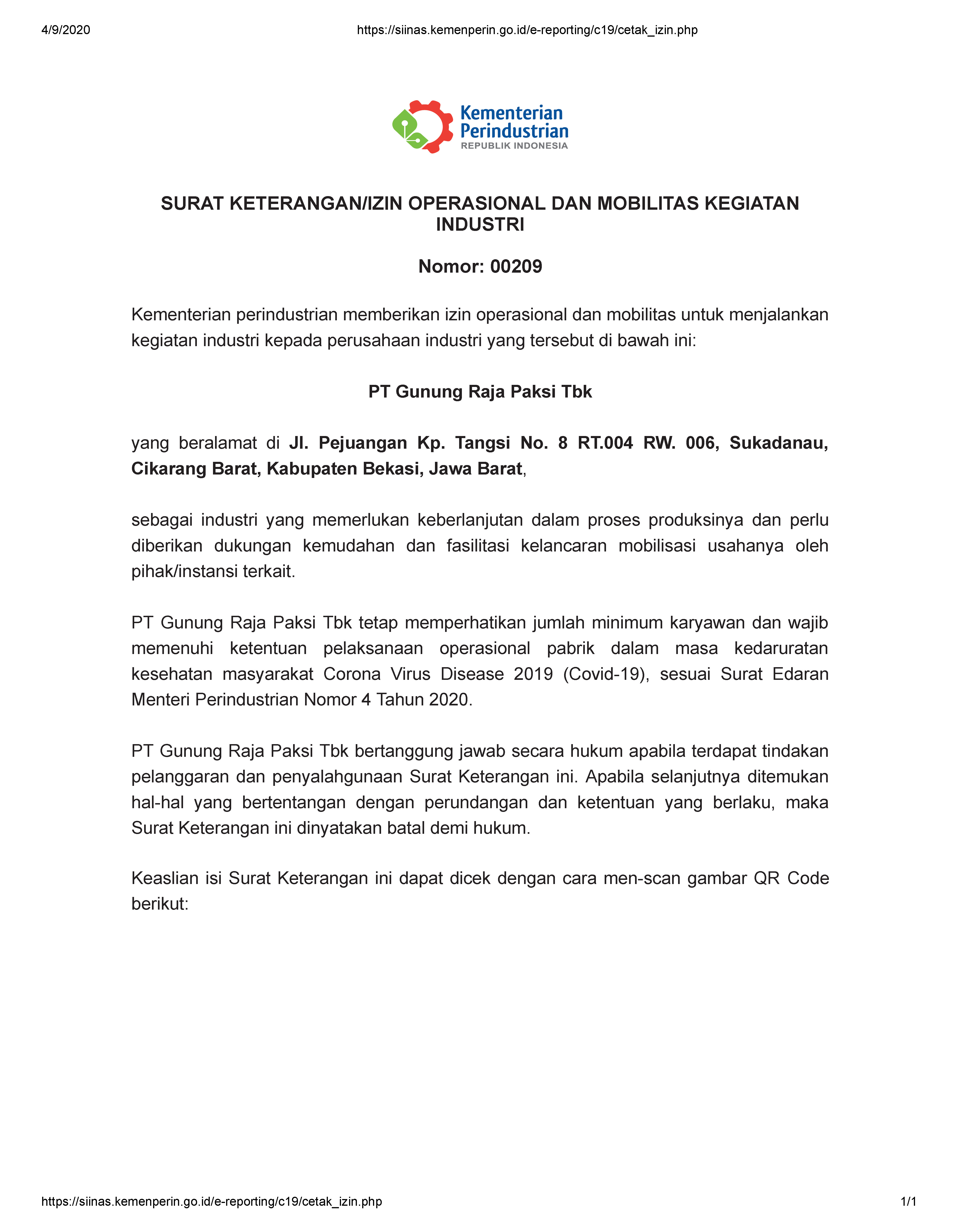 Pt Gunung Raja Paksi Tbk Has Obtained An Operational Permit And Operational Mobility Pt Gunung Raja Paksi Tbk