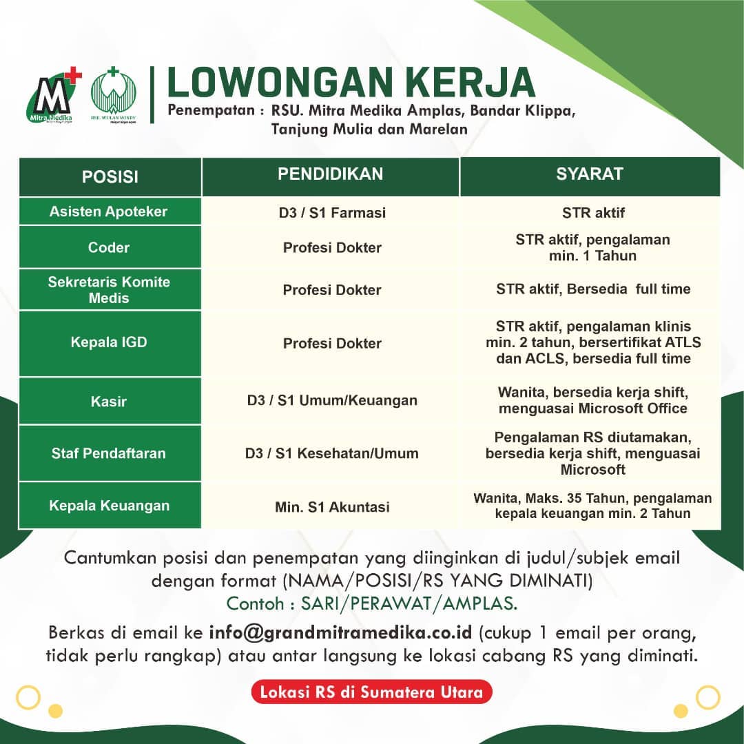 Lowongan Kerja D3 S1 Di Rsu Mitra Medika Medan Agustus 2021 Lowongan Kerja Medan Terbaru Tahun 2021