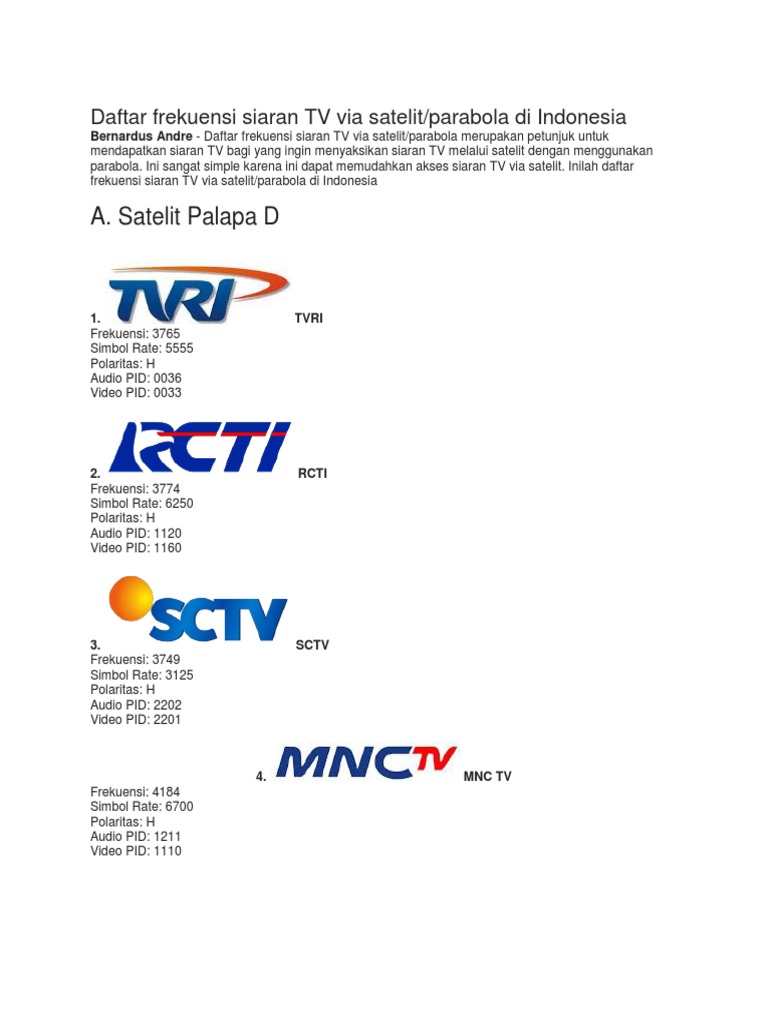 Daftar Frekuensi Semua Channel Tv Parabola Indonesia Satelit Telkom 4 Terbaru Mei 2021 Cek Selengkapnya Kendalku