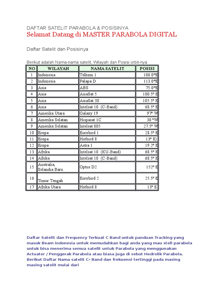 Daftar Satelit Parabola Info Parabola Tv Satelit