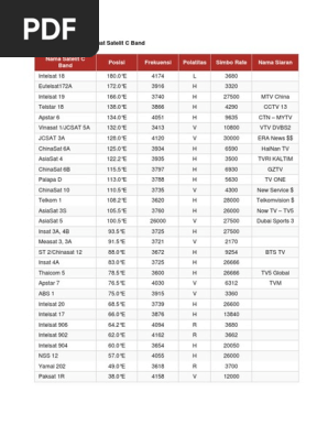 Daftar Sat Dan Freq Terkuat C Band Untuk Panduan Tracking Parabola Protech Parabola