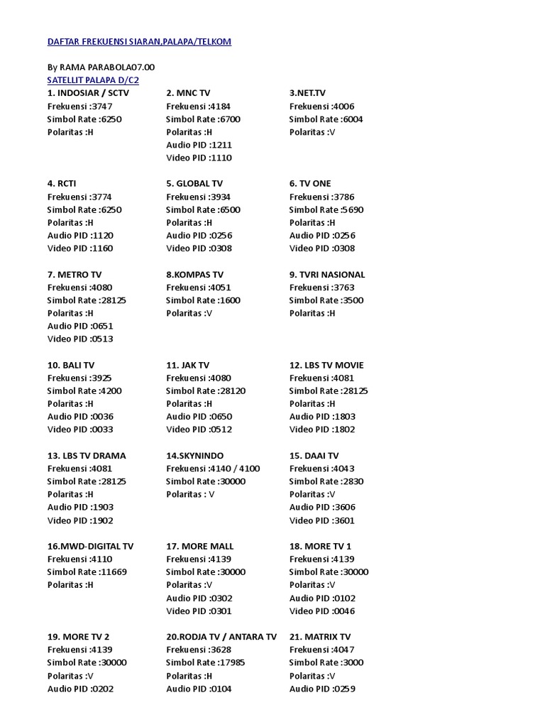 Daftar Frekuensi Satelit Palapa 113 E Terbaru Masputz Com
