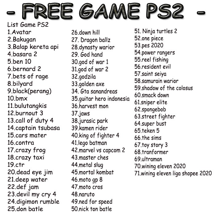 D Satryo W Daftar Game Ps 2 Terbaru 2018 Terasyik
