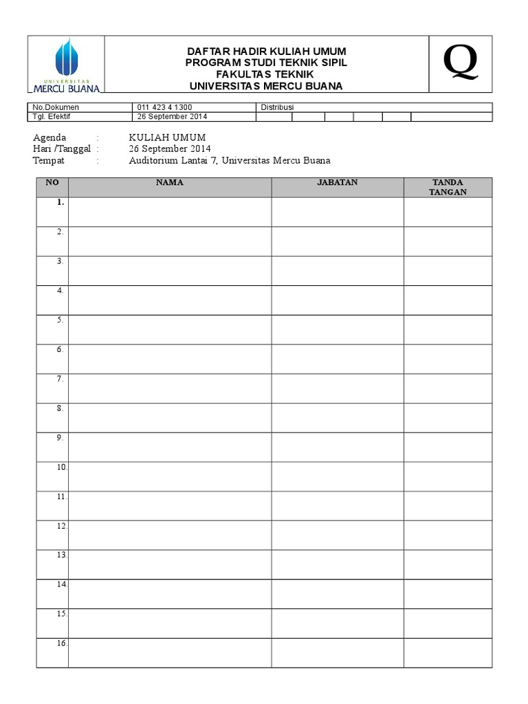 Contoh Presensi Daftar Hadir Dalam Rapat Indoamaterasu