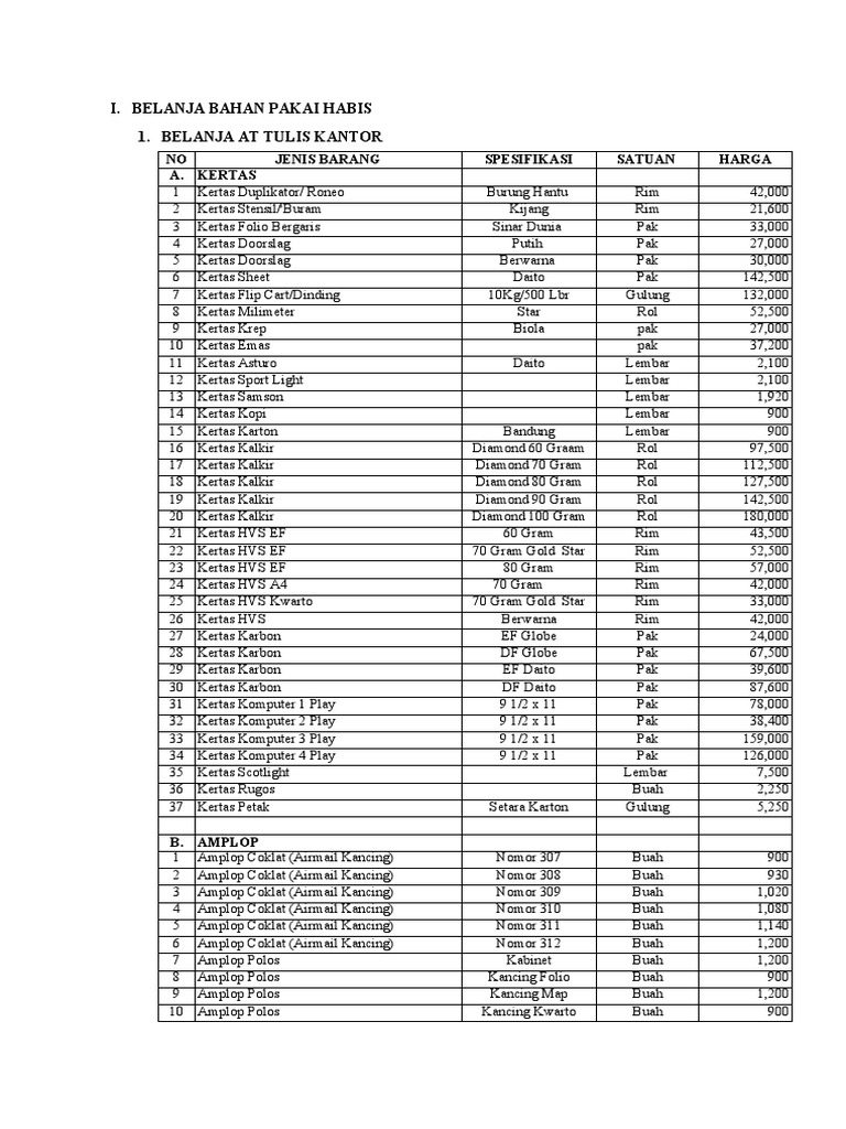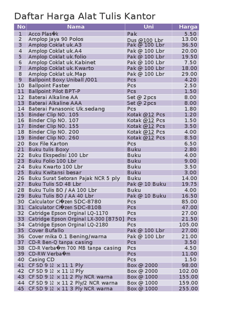 Terbaru 36 Contoh Daftar Harga Barang Atk