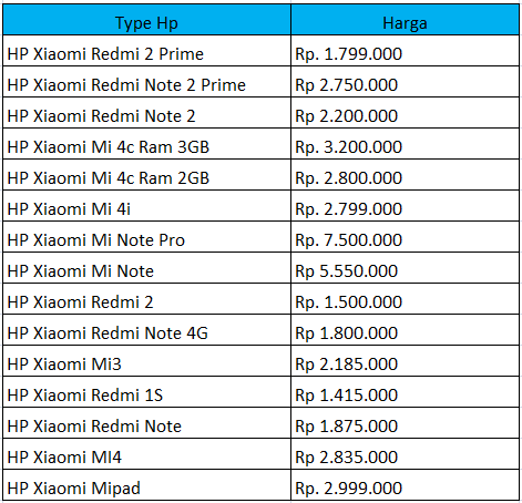 Daftar Harga Hp Android Xiaomi Terupdate Desember 2016 Panduan Membeli
