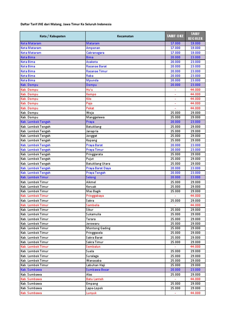 Daftar Tarif Jne Dari Malang Jawa Timur Ke Seluruh Indonesia Pdf Download Gratis