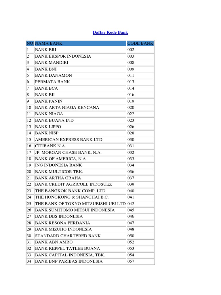120 Daftar Kode Bank Bri Bca Mandiri Bni Lainnya