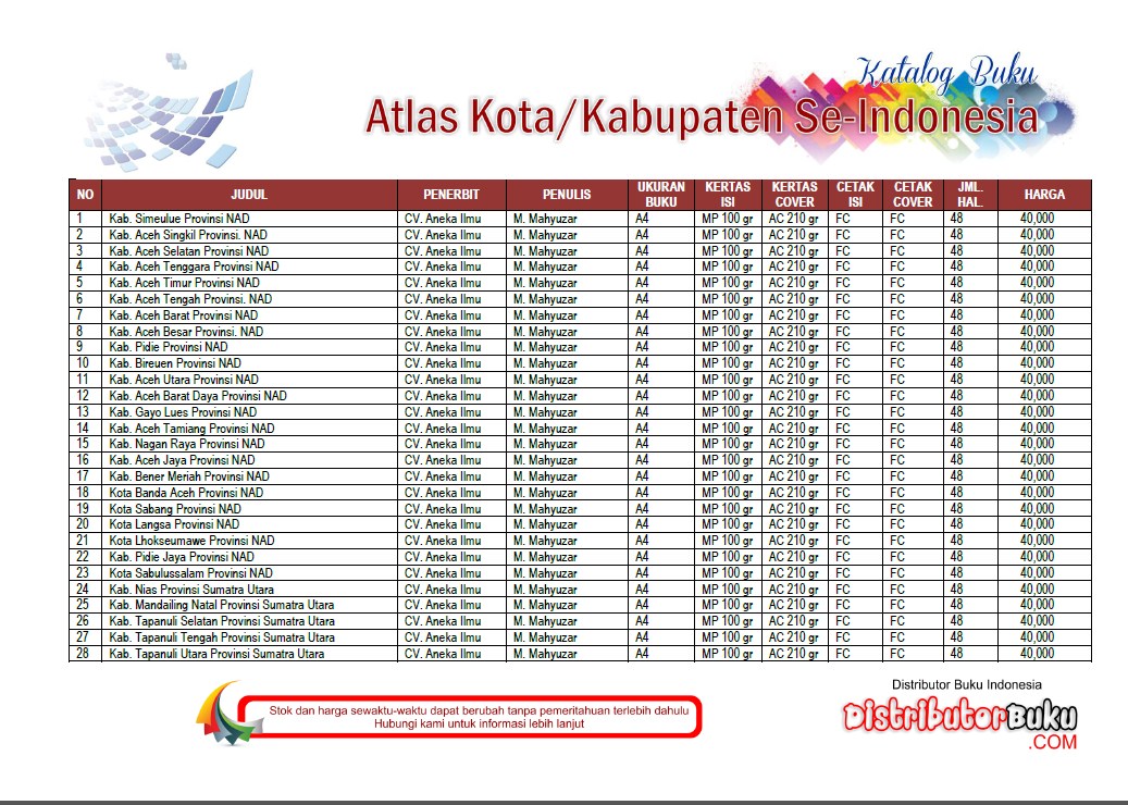 Daftar Buku Atlas Kabupaten Dan Kota Seluruh Indonesia Perpustakaan Sekolah