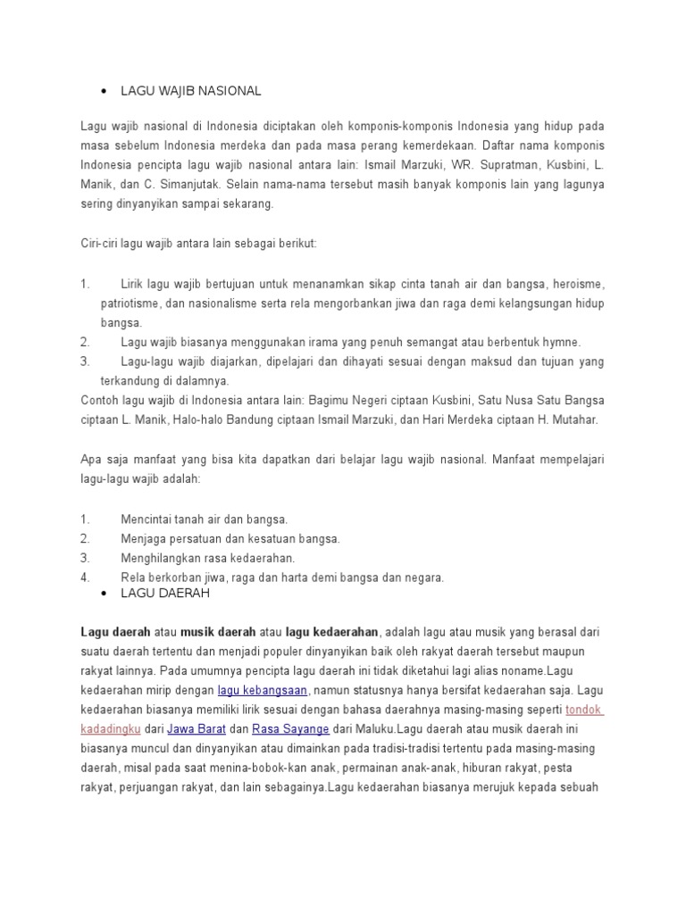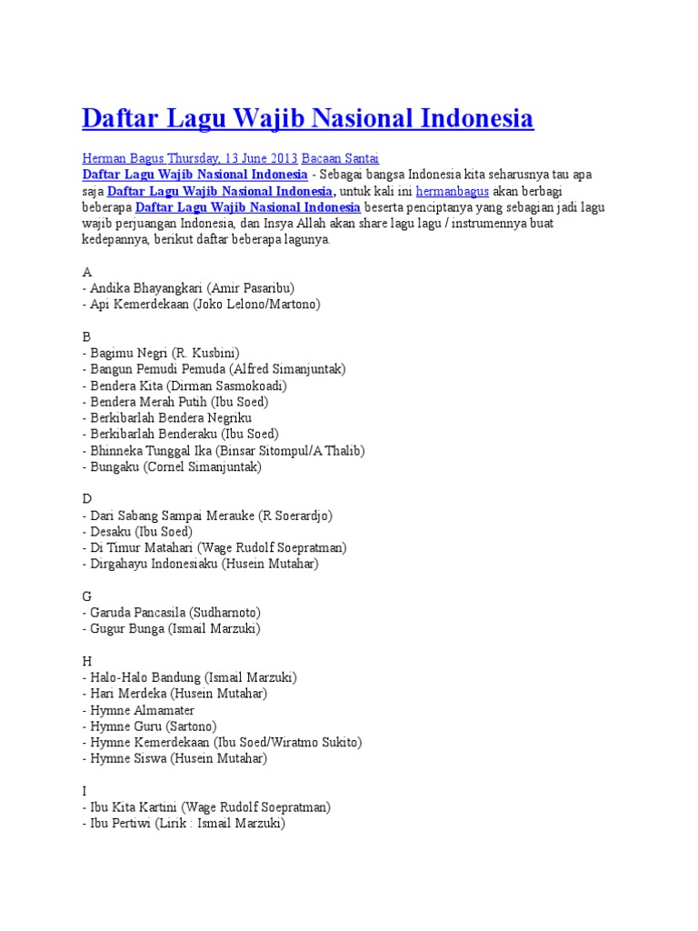 Daftar Lagu Wajib Nasional Hargacampur Com