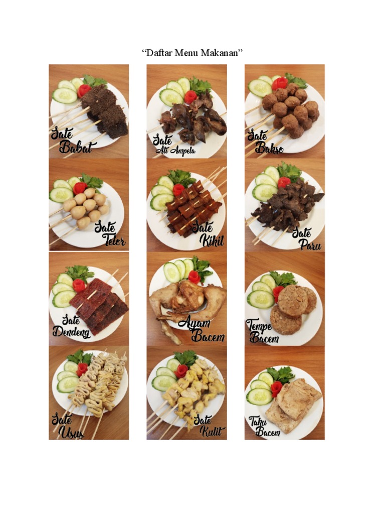 Detail Contoh Daftar Menu Makanan