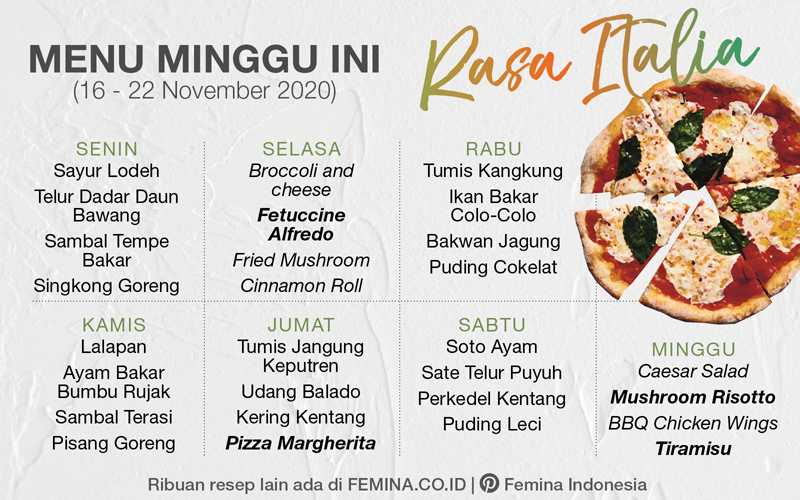 Daftar Menu Mingguan 16 22 November 2020 Rasa Italia