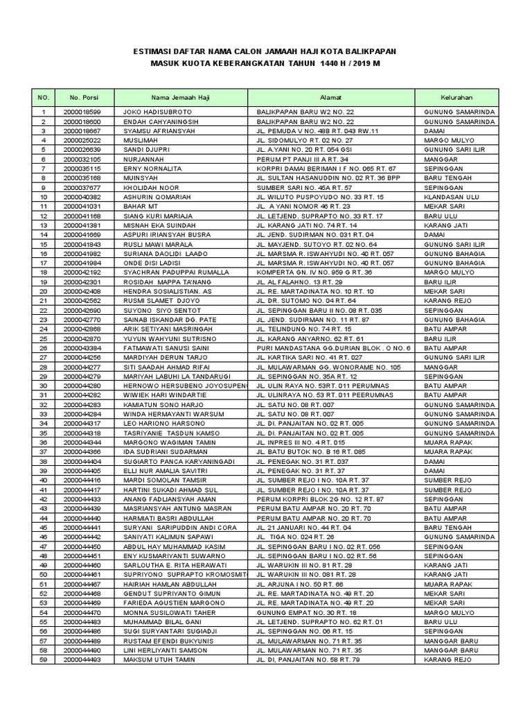 2019 Daftar Nama Calon Jamaah Haji Tahun 2020 Daftar Ini