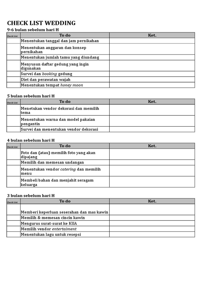 Persiapan Pernikahan Check List Persiapan Pernikahan