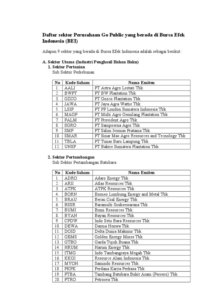 Daftar Perusahaan Di Bei Berdasarkan Sektor Invesnesia Com