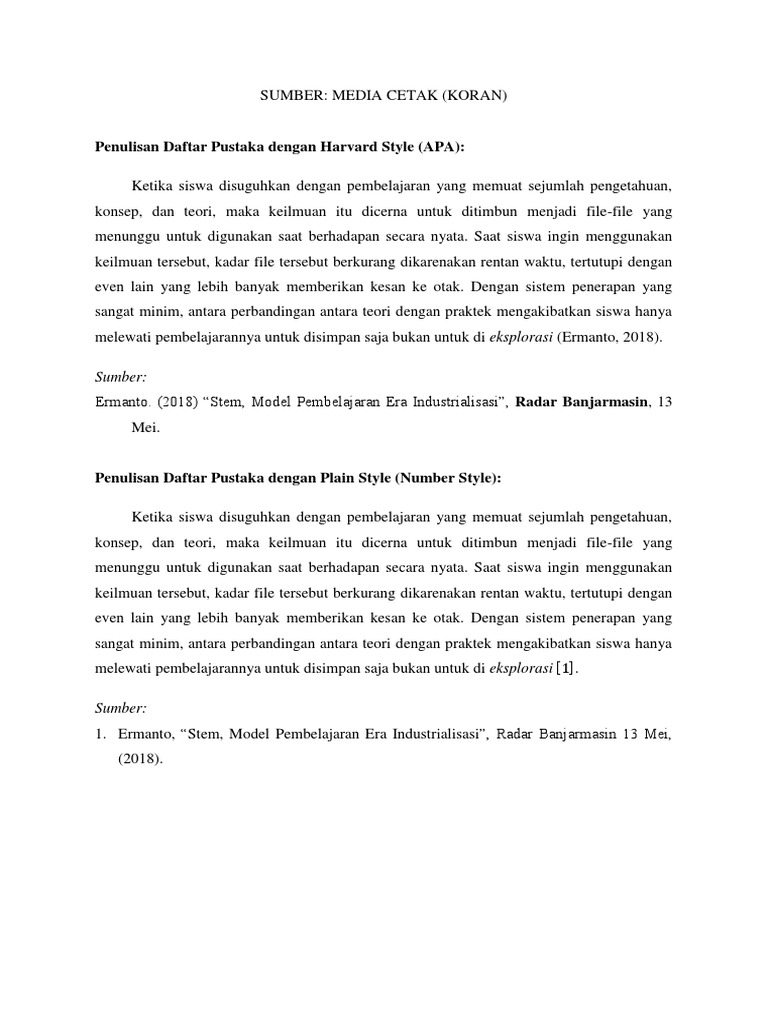 Cara Pengutipan Penulisan Daftar Pustaka Harvard Style 1 Pdf