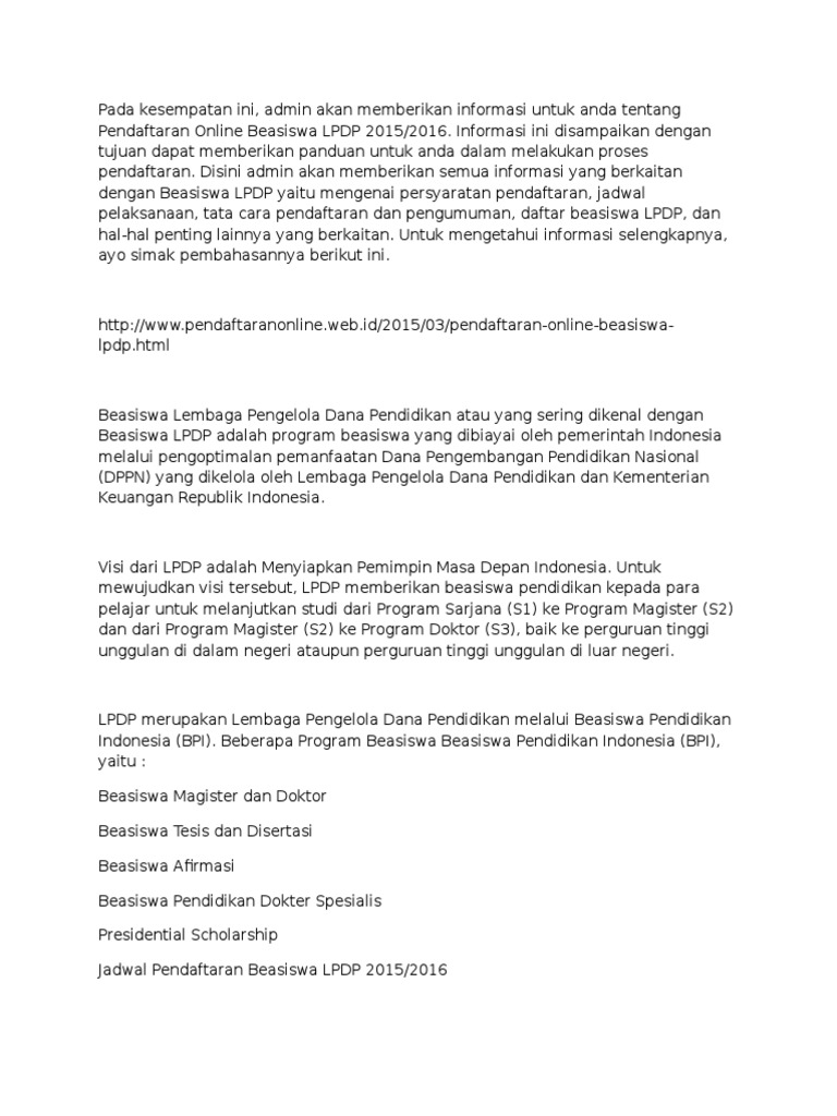 Lpdp Beasiswa Proses Seleksi Pendaftaran