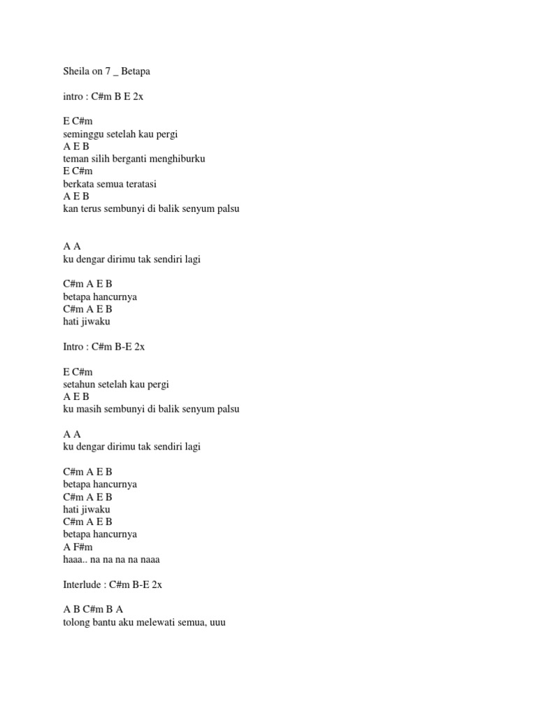 Lirik Lagu Sheila On 7 Dan Aviwkila Cover Chords Chordify