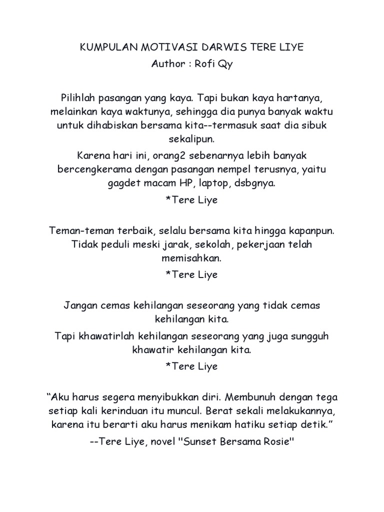 Kata Mutiara Darwis Tere Liye Terbaru Lengkap