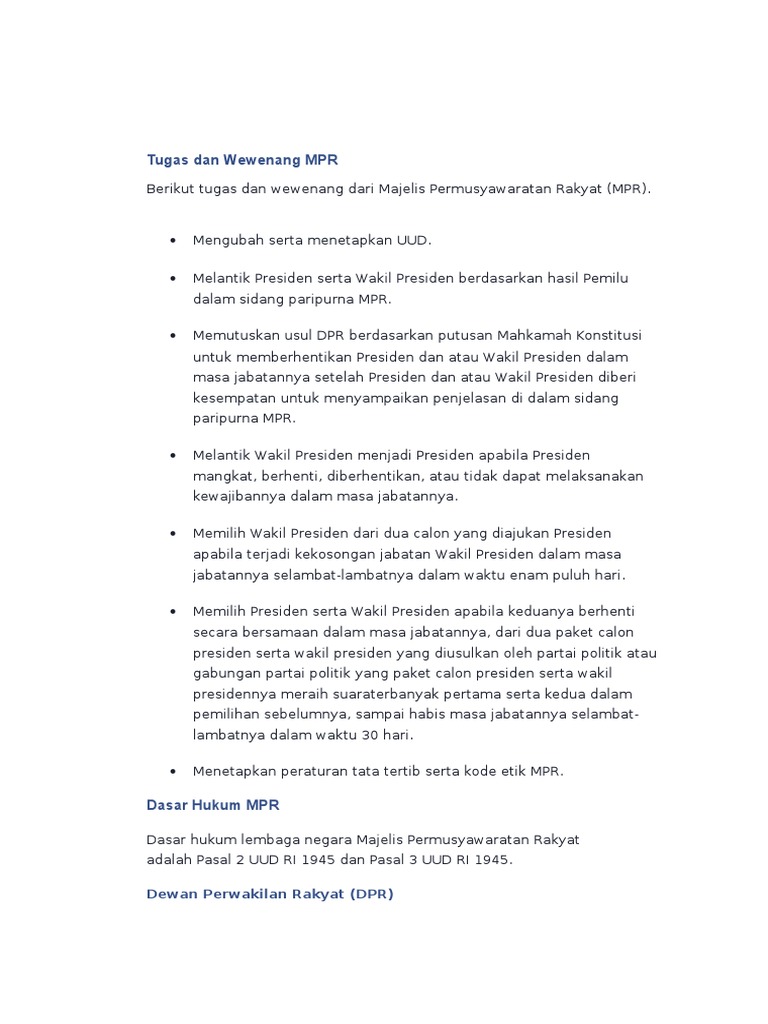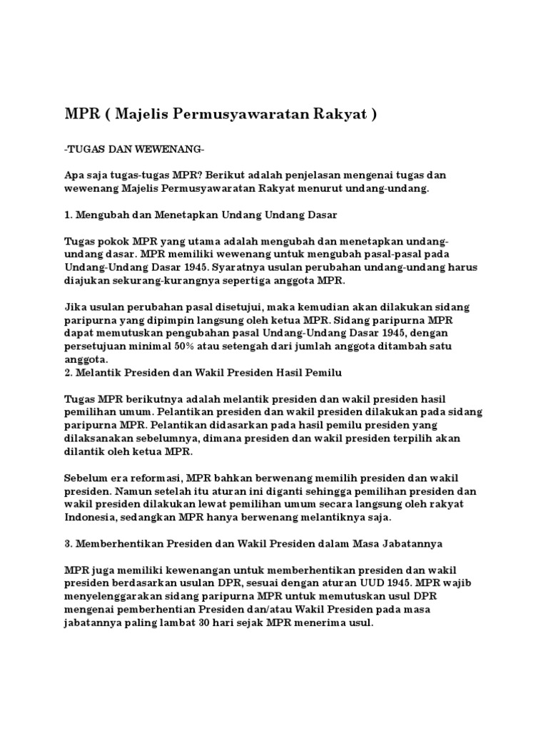 Tugas Mpr Dasar Hukum Mpr Wewenang Dan Fungsi Mpr Lengkap