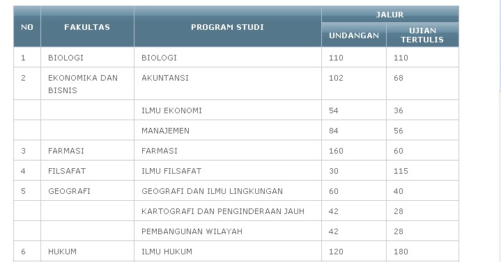Daya Tampung Ugm 2019 Di Sarjana S1 Sbmptn Seleksi Mandiri