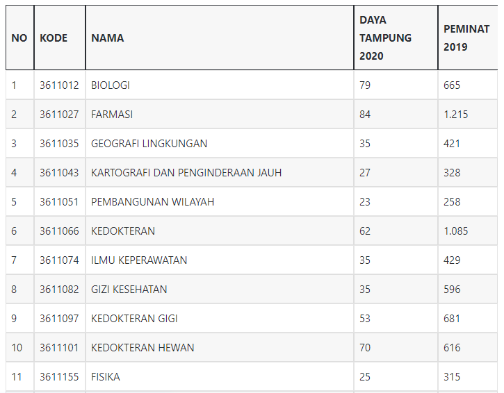 Daya Tampung Universitas Gadjah Mada Ugm 2020 Cpns 2021 Daya Tampung Snmptn Sbmptn Umptkin
