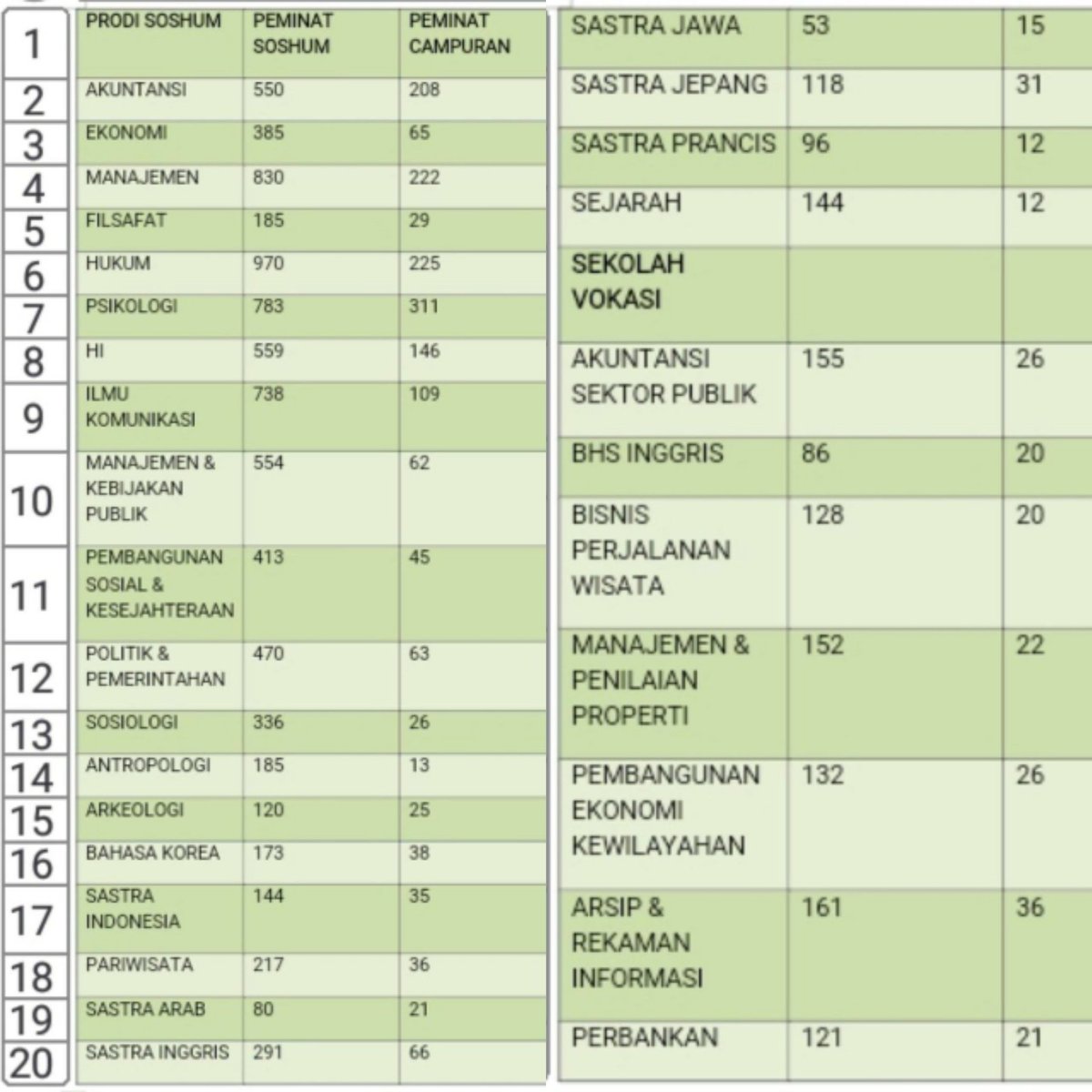 Daya Tampung Sbmptn Ugm 2021 Program Studi Soshum Edcent Id